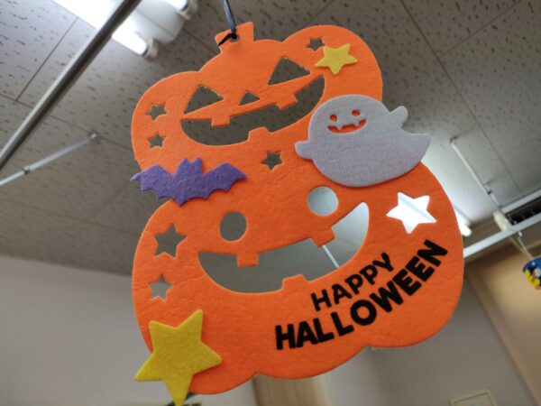 今日はお部屋も職員もハロウィンで飾り付けしてみました♪