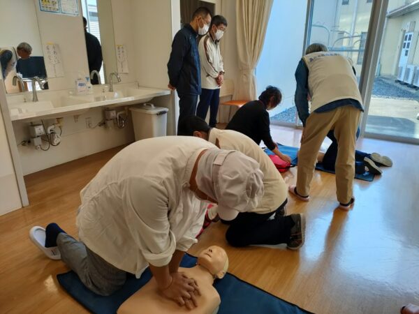 高浜市応急救命技術普及会様に依頼をし、併設する養護老人ホーム職員と一緒に心肺蘇生とAEDの使用方法について学びました!!