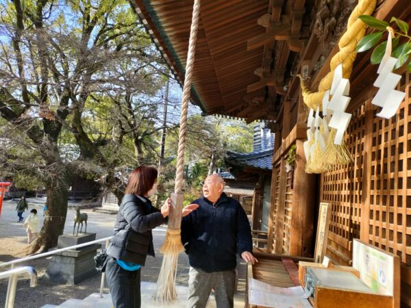 鈴緒を揺らしますが、上手く鈴が鳴らず…皆さん一生懸命です(^^;)
